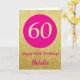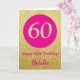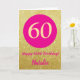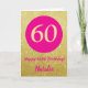 60th Happy Birthday Hot Pink and Gold Glitter Card with personalised name. For further customisation, please click the "Customise it" button and use our design tool to modify this template.