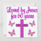 This cheerful 60 year old loves Jesus every day of her holy and religious life. This enchanting special lady has been loved by Jesus for 60 years. Enjoy this beautiful pink and purple butterfly and cross 60th birthday design on Tees, Mugs, Tote Bags and Gifts. Your amazing 60 year old will adore this unique and one of a kind 60th customised birthday gift that she will treasure every year. Celebrate turning 60 with a beautiful 60th birthday prayer. Give the gift of an original 60th birthday design to rejoice in turning 60.