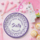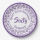 This over-the-hill design has a purple and white random number pattern with the purple milestone number 60 'repeated in varied sizes and angles for an all-over print. There is a white circle in the centre for your text and purple and white rings around the rim.