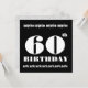 This contemporary design with its big and bold lettering is a fun way to invite folks to a SURPRISE 60th birthday celebration. Text on card in totally customisable - You can also change the text or background colours for a different look. You can experiment with different paper types by clicking on the "Invitation Options" tab on the upper right hand corner. I recommend the ice hued metallic paper, which gives your birthday invitation a festive shimmer and shine.