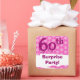 Here's a trendy design for a surprise 60th birthday party. Fun! All text is customisable. Matching items are available. See below for a sample save the date postcard, invitation, sticker and thank you card collection.