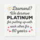 'Diamond? We deserve Platinum for putting up with each other for 60 Years' quote for a couple who got married 60 years ago or a couple renewing wedding vows on their diamond anniversary.