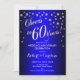 60th Wedding Anniversary Celebration Invitation. Printed invite car or digital template in sapphire royal blue and faux glitter gold foil. Features script font and confetti. Cheers to 60 Years! Perfect for an elegant celebration of 60 years of marriage.