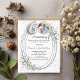 A white background. Decorated with greenery, an oval frame and faux diamonds. Personalise and add a photo, names and details.