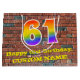 This vibrant and colourful birthday-themed giftbag design, inspired by graffiti and street art, features a large number "61" having a rainbow spectrum gradient inspired pattern. It also features the message "Happy 61st Birthday,", and a custom name. The background features a brick wall inspired pattern. A fun birthday themed gift bag like this might be a fun way to wrap a gift or present being given to somebody who is celebrating their 61st birthday. [~Z0000522]