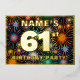 The front of this fun and joyful sixty-first birthday celebration/party foil invitation card design features an editable name, a large number “61st”, the message “BIRTHDAY PARTY!”, and a border. The background of the front has a bold, multicolored pattern inspired by bursting celebratory fireworks. The back features personalised details about the event, such as the date, time, location/venue, and any other relevant information. Editable invitations like these might be a fun way to invite attendees/guests to a birthday party being held to celebrate somebody’s 61st birthday. [~Z0000602]