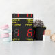 This nerdy and geeky birthday themed wrapping paper design features a large number "61" having a red seven segment digital display inspired look, along with the message "Happy 61st Birthday," and a custom name in nerdy retro style yellow text, on a black coloured background. Wrapping paper like this might be used when giving a gift or present in honour of somebody’s sixty first birthday. [~Z0000387]