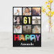 61st Happy Birthday Photo Collage Modern Black Card with personalised name. For further customisation, please click the "Customise it" button and use our design tool to modify this template.