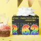 This fun, colourful, and vibrant birthday-themed wrapping paper design features a large number "62" with a rainbow spectrum gradient inspired pattern, along with the message "Happy 62nd Birthday,", and a personalised name. Part of the background features a colourful music notes and symbols pattern. Fun wrapping paper like this might be used when wrapping presents being given to a musician, a singer, a composer, or somebody else in celebration of their 62nd birthday. [~Z0000422]