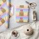 This cheerful and upbeat birthday wrapping paper design features a cartoon-style depiction of a three-tier birthday cake having number-shaped candles on top showing the age “62“, along with the message “HAPPY 62ND BIRTHDAY,”, and a custom recipient name. The background features a multi-colour pastel rainbow spectrum inspired gradient pattern. Joyful wrapping paper like this might be used when wrapping presents being given to somebody in celebration of their sixty second birthday. [~Z0000622]