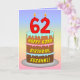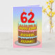 62nd Birthday — Fun Cake & Candles, w/ Custom Name Card