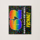 This fun and colourful birthday jigsaw puzzle design features a large number “62” having a multicolored rainbow spectrum inspired gradient pattern. It also features the message “HAPPY 62nd BIRTHDAY,”, and a customisable recipient name. The background has an exciting pattern of music notes having a variety of sizes and colours. A bold, customised birthday puzzle like this might be a fun way to send a birthday greeting message to somebody who is celebrating their sixty-second birthday. These might be more meaningful if that person is a musician, a songwriter, a singer, a composer, or appreciates music. [~Z0000608]