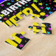 This upbeat and bold birthday jigsaw puzzle design features a large number “62” having a multicolored rainbow spectrum inspired gradient pattern. It also features the message “HAPPY 62nd BIRTHDAY,”, and a customisable recipient name. The background has an eye-catching, colourful stars pattern. An exciting, editable birthday puzzle like this might be used to celebrate somebody’s sixty-second birthday. [~Z0000607]