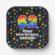 62nd Birthday: Fun Stars Pattern and Rainbow “62” Paper Plate