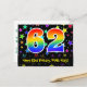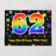 62nd Birthday: Fun Stars Pattern, Rainbow 62, Name Postcard