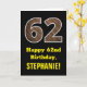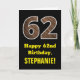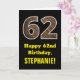 62nd Birthday: Name, Faux Wood Grain Pattern "62" Card