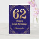 62nd Birthday Navy Blue and Gold Glitter Frame. For further customisation, please click the "Customise it" button and use our design tool to modify this template.