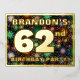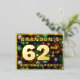 The front of this fun sixty-second birthday party foil invitation postcard design features a custom name, a large number “62nd”, the message “BIRTHDAY PARTY!”, and a border. The background of the front features a joyful, colourful bursting celebratory fireworks-inspired pattern. The back features personalised details about the event, such as the date, time, place/venue, and any other relevant information. Customisable invitations like these might be a fun way to let attendees/guests know about a birthday party being held in celebration of somebody’s 62nd birthday. [~Z0000609]