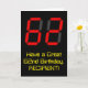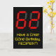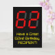The front of this fun and nerdy birthday-themed greeting card design features a large number "62" having a red seven segment digital display style appearance, along with the message "Have a Great 62nd Birthday," and a custom name, on a black coloured background. The inside features an editable birthday greeting message, or could perhaps be cleared and left blank if a message is to be written by hand instead. A personalised birthday card like this might be a fun way to send a message in celebration of somebody’s sixty second birthday. [~Z0000386]