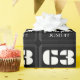 This vintage 1920s/1930s appearance inspired birthday wrapping paper design features a large art deco style inspired number "63", the message "Happy 63rd Birthday,", a customisable name, and a border pattern consisting of thin lines. Wrapping paper like this might be used when giving a gift or present in honour of somebody’s 63rd birthday. [~Z0000485]