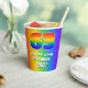 This exciting and joyful birthday paper cup design features a large number “63” with a colourful rainbow spectrum inspired gradient pattern, along with the message “HAPPY 63rd BIRTHDAY,”, and an editable name. The background also features a cheerful multicolored rainbow spectrum inspired gradient pattern. Paper cups like this might be used when celebrating somebody’s 63rd birthday. [~Z0000576]
