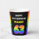 63rd Birthday: Colourful Rainbow # 63, Custom Name Paper Cups