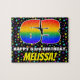 This fun and bold birthday-themed jigsaw puzzle design features a large number “63” having a multicolored rainbow spectrum inspired gradient pattern. It also features the message “HAPPY 63rd BIRTHDAY,”, and an editable recipient name. The background has a cheerful, colourful pattern featuring star shapes of various sizes. An exciting, editable birthday puzzle like this might be used to celebrate somebody’s sixty-third birthday. [~Z0000607]