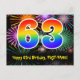 63rd Birthday – Fun Fireworks Pattern + Rainbow 63 Postcard