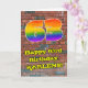 This vibrant and exciting urban graffiti and street art inspired birthday greeting card design features a large number “63” with a multicolored rainbow spectrum gradient inspired pattern, along with the message “Happy 63rd Birthday,”, and a personalised name. The background of the front has a brick wall pattern. The inside features a customisable birthday greeting message, or could perhaps be cleared and left blank if a message is to be written by hand instead. A vibrant, editable birthday greeting card like this might be sent to celebrate somebody’s sixty-third birthday. [~Z0000586]