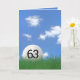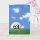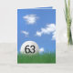 White golf ball in green grass with summer sky background for 63rd birthday.