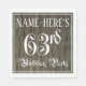 This luxurious and elaborate birthday party themed paper napkin design features an editable name and the message “63rd Birthday Party”. The large number “63rd” and the words “Birthday Party” are in elegant script-style text. The background has a faux/imitation woodgrain-inspired pattern. Ornate, fancy paper napkins like this might be used at a birthday celebration being held to celebrate somebody’s 63rd birthday. [~Z0000564]