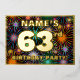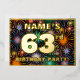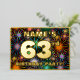 The front of this fun sixty-third birthday party/celebration foil invitation card design features a customisable name, a large number “63rd”, the message “BIRTHDAY PARTY!”, and a border. The background of the front has a bold, multicolored pattern inspired by bursting celebratory fireworks. The back features personalised details about the event, such as the date, time, place, and any other relevant information. Personalised invitations like these might be a fun way to invite guests/attendees to a birthday gathering being held to honour somebody’s 63rd birthday. [~Z0000602]