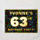 The front of this exciting and vibrant sixty-third birthday celebration/party foil invitation card design features an editable name, a large number “63rd”, the message “BIRTHDAY PARTY!”, and a border. The background of the front has an eye-catching, multicolored pattern of musical symbols. The back features personalised details about the event, such as the date, time, venue/place, and any other important information. Personalised invitations like these might be a fun way to invite guests to a birthday party being held to honour somebody’s 63rd birthday. These might be extra special for a music-themed birthday party. [~Z0000601]
