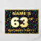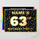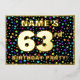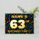 The front of this fun and joyful sixty-third birthday celebration foil invitation card design features a personalised name, a large number “63rd”, the message “BIRTHDAY PARTY!”, and a border. The background of the front features an eye-catching, multicolored star shapes pattern. The back features personalised details about the event, such as the date, time, place/venue, and any other important information. Editable invitations like these might be a fun way to invite attendees to a birthday gathering/party being held to celebrate somebody’s 63rd birthday. [~Z0000600]