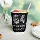 This vintage style and 1920s/1930s style inspired birthday paper cup design features a large art deco inspired appearance number “64”, plus the birthday greeting message “Happy 64th Birthday,” and a customisable name. The background is coloured black. Birthday themed paper cups like this might be fun to use at a birthday party being held for somebody who is celebrating their sixty fourth birthday. [~Z0000542]