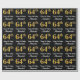 This sophisticated, stylish, and elegant birthday wrapping paper design features a large ordinal number “64th” having a faux/imitation gold-inspired gradient pattern, plus the birthday greeting message “Happy 64th Birthday,” and a personalised recipient name in a script-style font. The background is coloured black. Sophisticated wrapping paper like this might be used when giving a gift or present in honour of somebody’s 64th birthday. [~Z0000515]