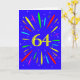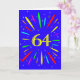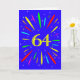 An explosive 64th birthday card! What a wonderful way to send birthday greetings. The number 64 in bright yellow with an explosion of bright colours and stars.