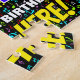 This exciting and joyful birthday-themed jigsaw puzzle design features a large number “64” with a multicolored rainbow spectrum inspired gradient pattern, along with the message “HAPPY 64th BIRTHDAY,”, and a custom recipient name. The background features an upbeat pattern of music notes and symbols with various sizes and colours. An eye-catching, editable birthday puzzle like this might be a fun way to deliver birthday greetings to somebody who is celebrating their sixty-fourth birthday. These might be extra special if that person is a singer, a composer, a musician, a songwriter, or a lover of music. [~Z0000608]