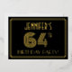 The front of this vintage-appearance sixty-fourth birthday celebration/party foil invitation features a personalised name, a large art deco style inspired number “64TH”, the message “BIRTHDAY PARTY!”, and a border pattern consisting of lines. The front also has a black-coloured background by default, but it can be customised to a different colour if desired. The back features personalised details about the event, such as the date, time, location, and any other information that may be relevant. Luxurious, elegant, personalised invitations like these might be used to invite guests to a birthday party being held to celebrate somebody’s 64th birthday. [~Z0000590]