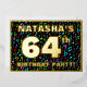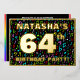 The front of this upbeat and exciting sixty-fourth birthday party foil invitation card design features a personalised name, a large number “64th”, the message “BIRTHDAY PARTY!”, and a border. The background of the front has a vibrant, multicolored pattern of musical symbols and notes. The back features personalised details about the event, such as the date, time, location/venue, and any other important information. Customisable invitations like these might be a fun way to invite attendees to a birthday party being held to celebrate somebody’s 64th birthday. These might be more meaningful for a music-themed birthday party. [~Z0000601]