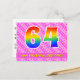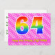 64th Birthday: Pink Stripes & Hearts, Rainbow 64 Postcard
