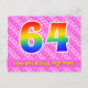 The front of this happy, cheerful, and loving birthday postcard design features a large number "64" with a rainbow spectrum gradient inspired pattern, along with the message "Happy 64th Birthday,", and an editable recipient name. The front additionally has a happy dark pink and light pink striped pattern containing heart shapes. The back features a custom birthday greeting message, or could perhaps be cleared and left blank if a message is to be written by hand instead. A personalised birthday postcard like this might be a fun way to celebrate somebody’s sixty fourth birthday. Postcards like this might also be used to invite guests to a birthday party being held for somebody who is turning 64 years old. [~Z0000449]