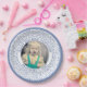 65 Your Photo Random Number Pattern Blue/White Paper Plate