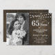 Elegant design rustic dark brown wood pattern. Features script font and fairy string lights. Cheers to 65 years! Can be personalised into any year. Message me if you need further customisation.