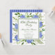 This blue hydrangea 65th birthday party invitation is whimsical and stunning! With its watercolor multi-hued blue hydrangeas, wispy natural greenery, and coordinating blue striped back it is perfect for your loved one who is turning 65. The script font is modern yet classic! By selecting Personalise this template and typing in your information you can see your gorgeous invitations in seconds!
