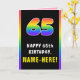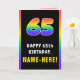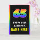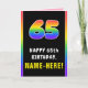 65th Birthday: Colourful Rainbow # 65, Custom Name Card