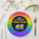 65th Birthday: Colourful Rainbow # 65, Custom Name Paper Plate