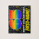 This colourful and upbeat birthday jigsaw puzzle design features a large number “65” having a multicolored rainbow spectrum inspired gradient pattern. It also features the message “HAPPY 65th BIRTHDAY,”, and a customisable recipient name. The background has a fun, colourful stars pattern. A bold, personalised birthday puzzle like this might be a fun way to deliver birthday greetings to somebody who is celebrating their sixty-fifth birthday. [~Z0000607]