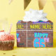 This fun birthday wrapping paper design features the message “HAPPY 65TH BIRTHDAY,” having a colourful, vibrant, graffiti-inspired look, in addition to a customisable recipient name. The background features a pattern inspired by the look of a brick wall. Wrapping paper like this might be a fun way of wrapping a birthday present or gift being given to somebody who is celebrating their 65th birthday. [~Z0000533]