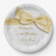 65th Birthday Gold Damask and Faux Bow Paper Plate